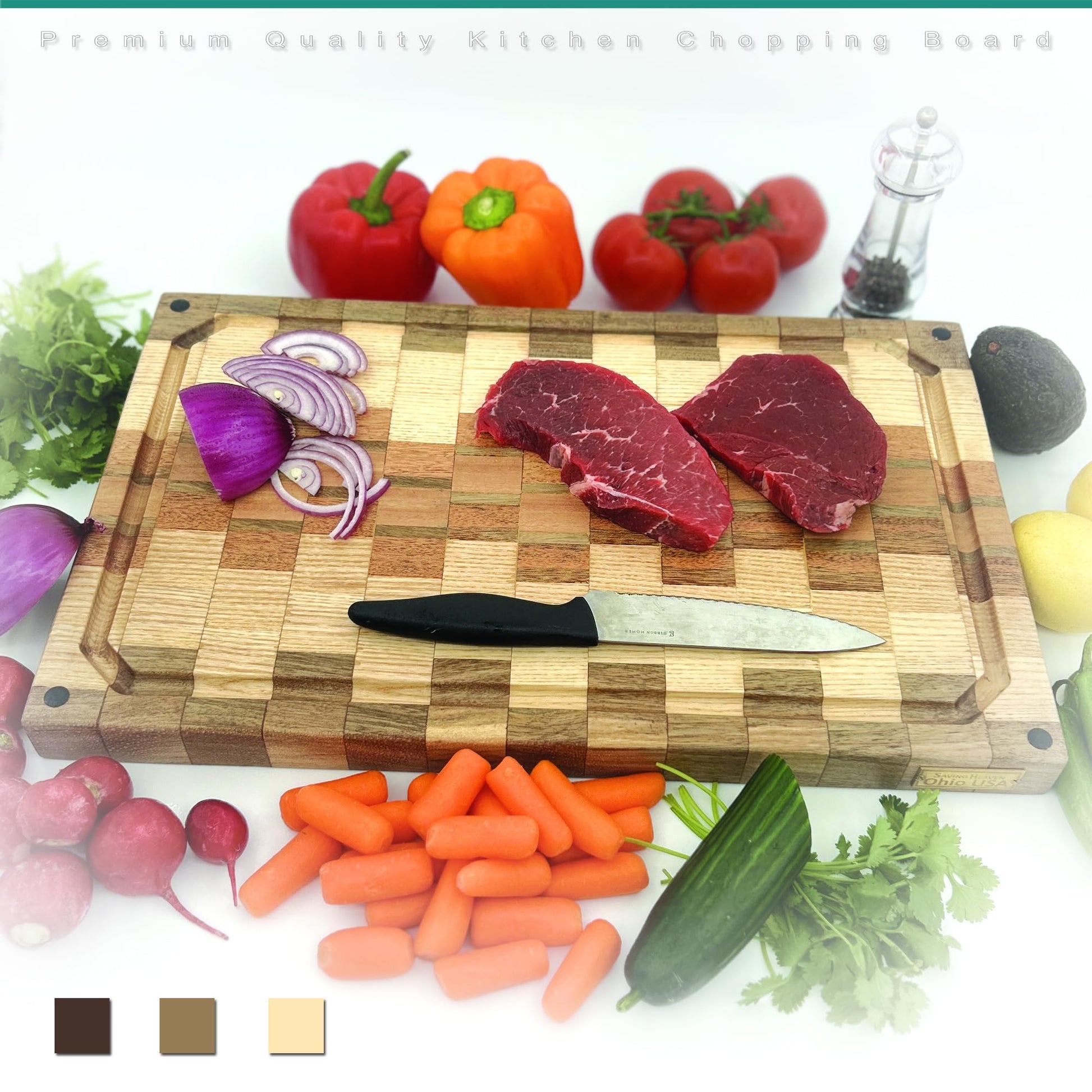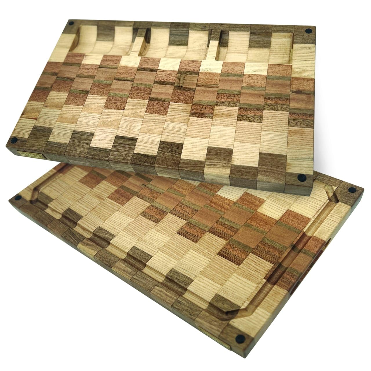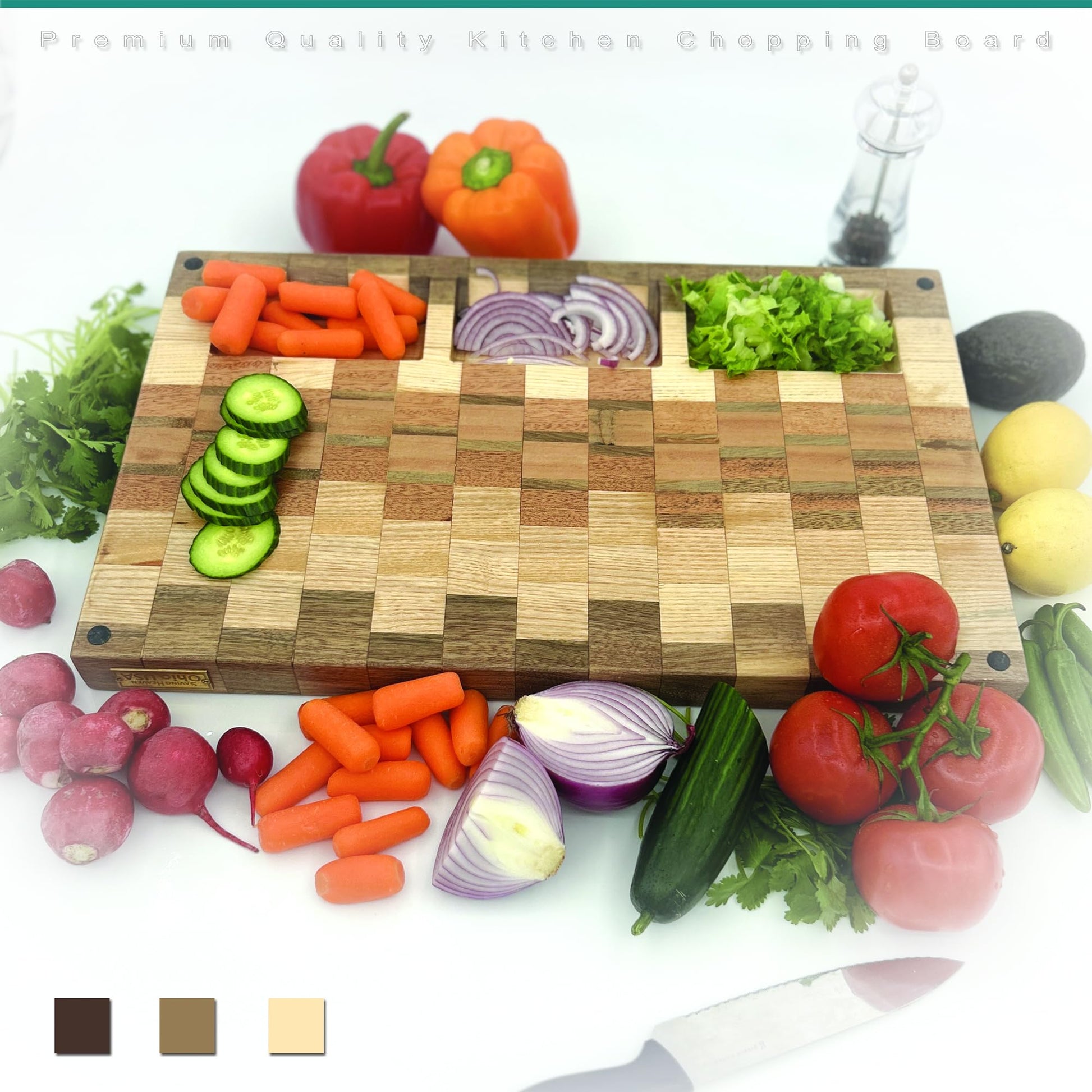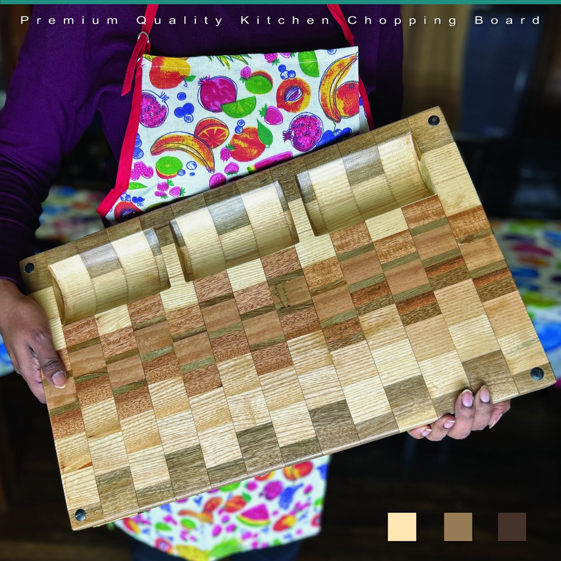Premium Solid Wood Cutting Board with Handle Cutting Board, Organic Walnut, Oak, Beachwood & Edge Grain Design Wood, Multi-Purpose with Serving Plate, Chopping and Charcuterie Non-Slip Feet